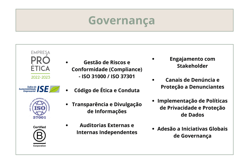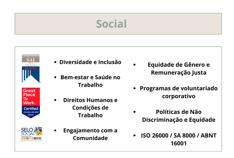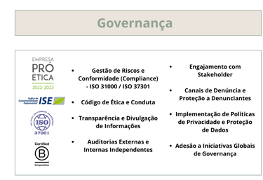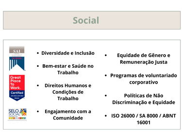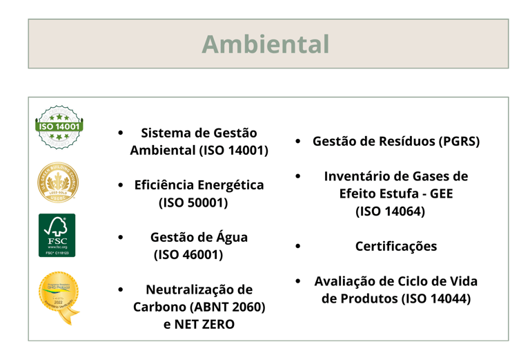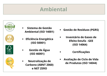 ✔ Suporte em certificações como ISO 14001, ISO 26000, Sistema B